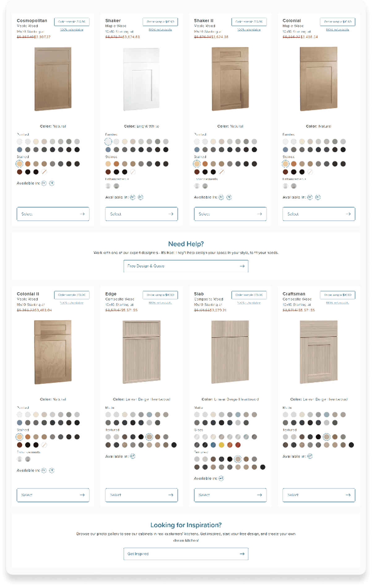 Customers needed a simple buying experience, but cabinets have many configuration options such as size, finish, and accessories.